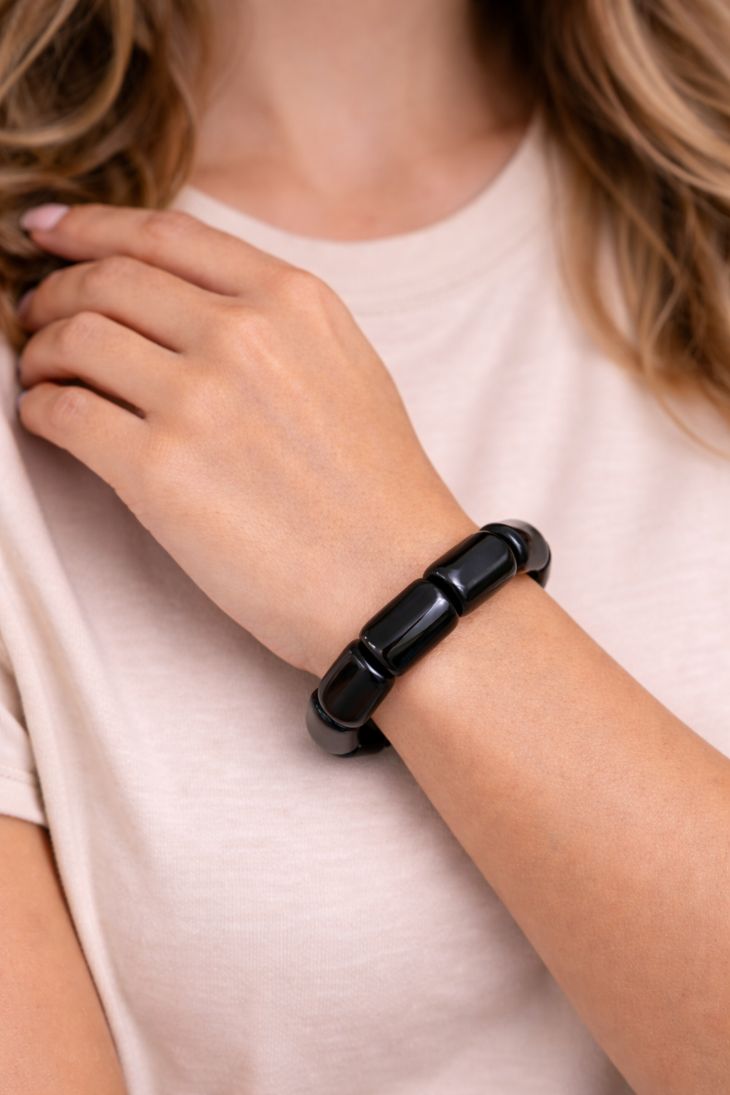 « Véritable bouclier contre les ondes négatives, l’onyx noir est puissant et est un bijou tranché pour celles qui osent le noir »