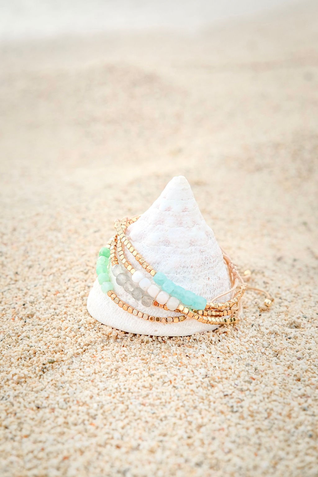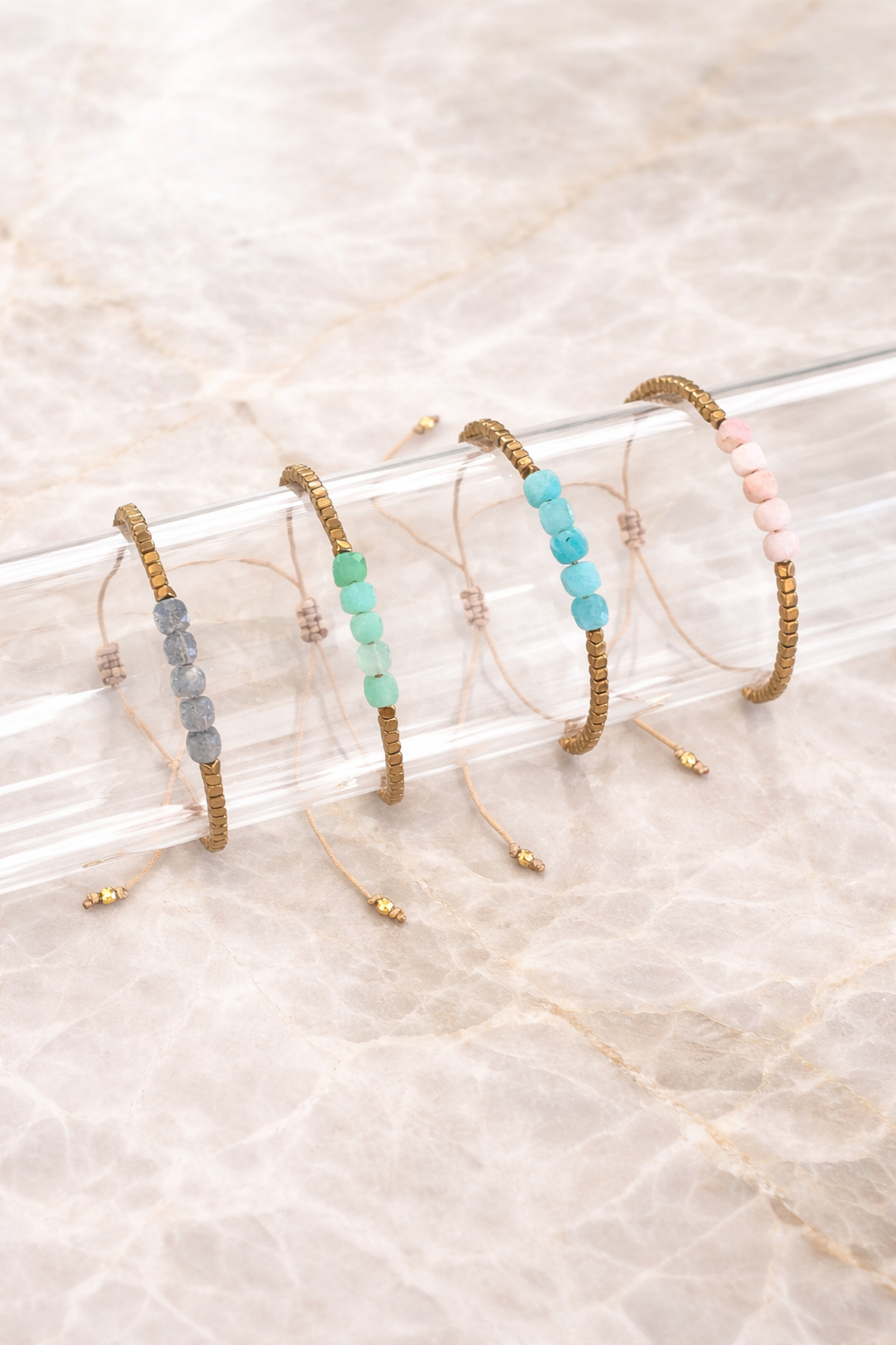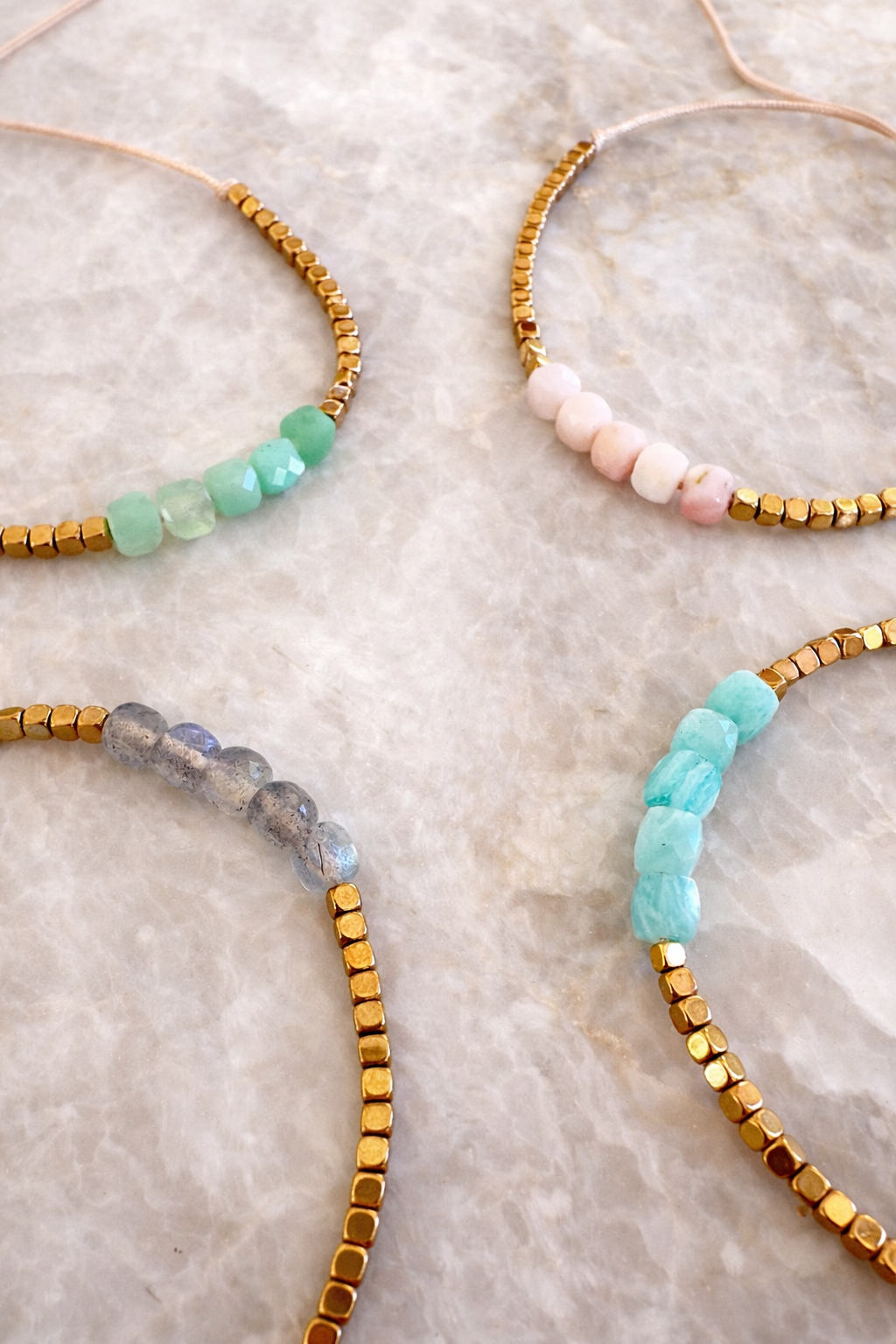 Bracelet tressé à la main en Belgique avec du fil de Jade beige