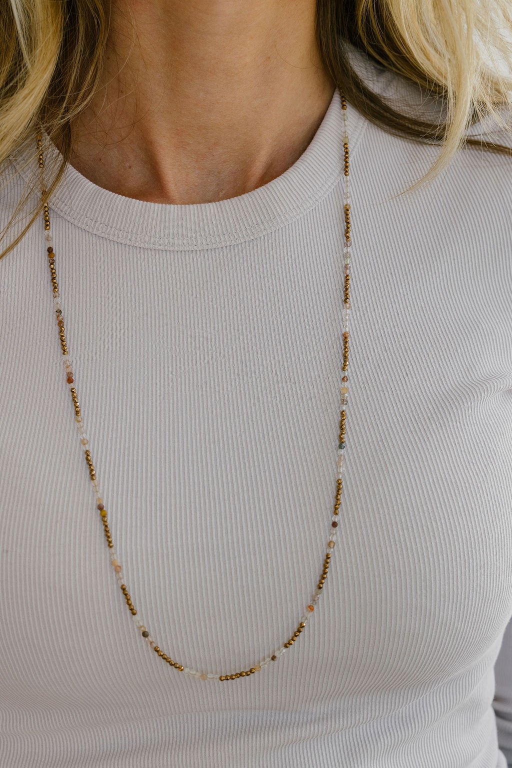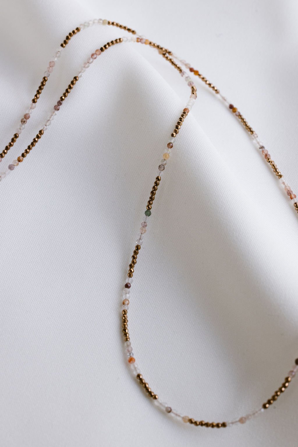 » Ce sautoir, je l’ai imaginé long à l’infini pour pouvoir aller sur vos pulls en hiver ou vos t-shirts en été. Il ne faut surtout pas hésiter à le combiner avec d’autres colliers plus courts »