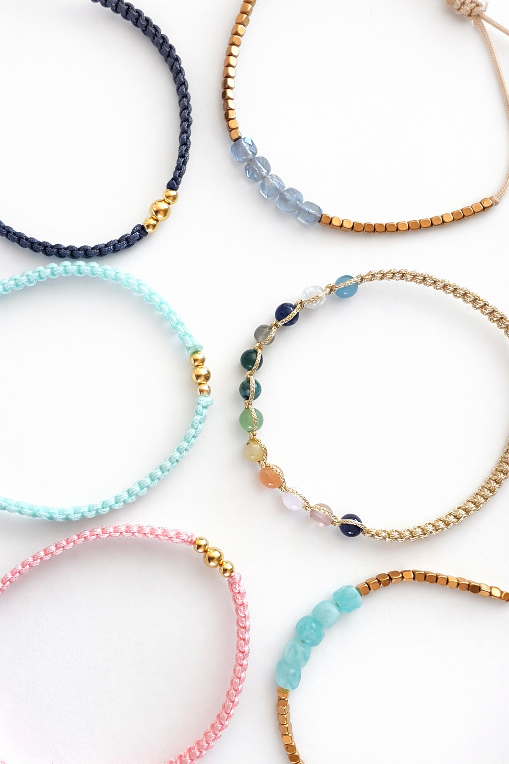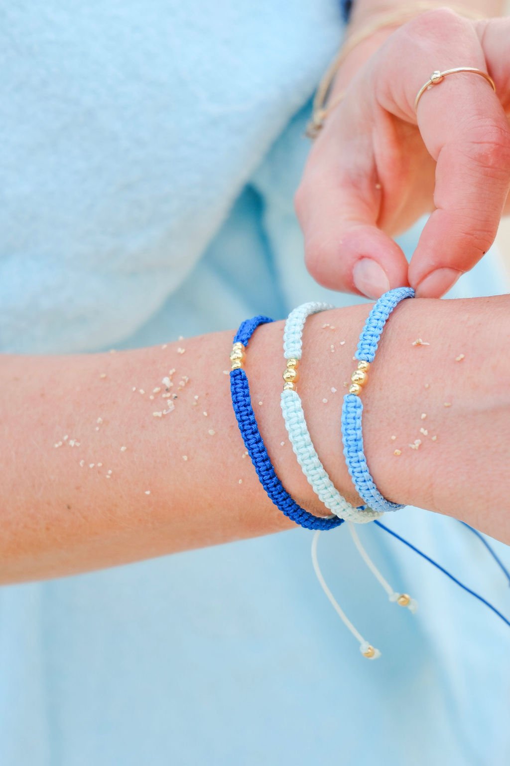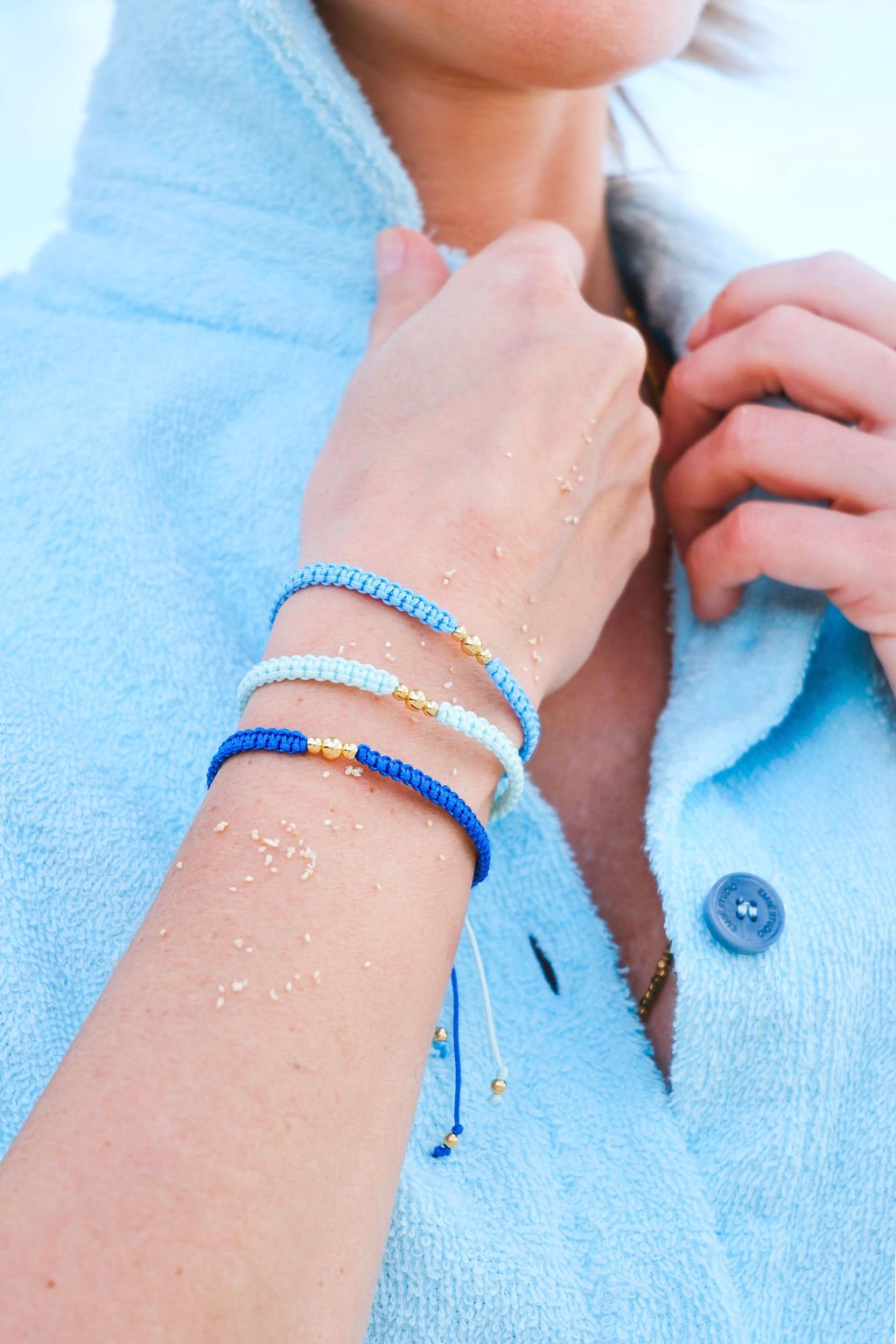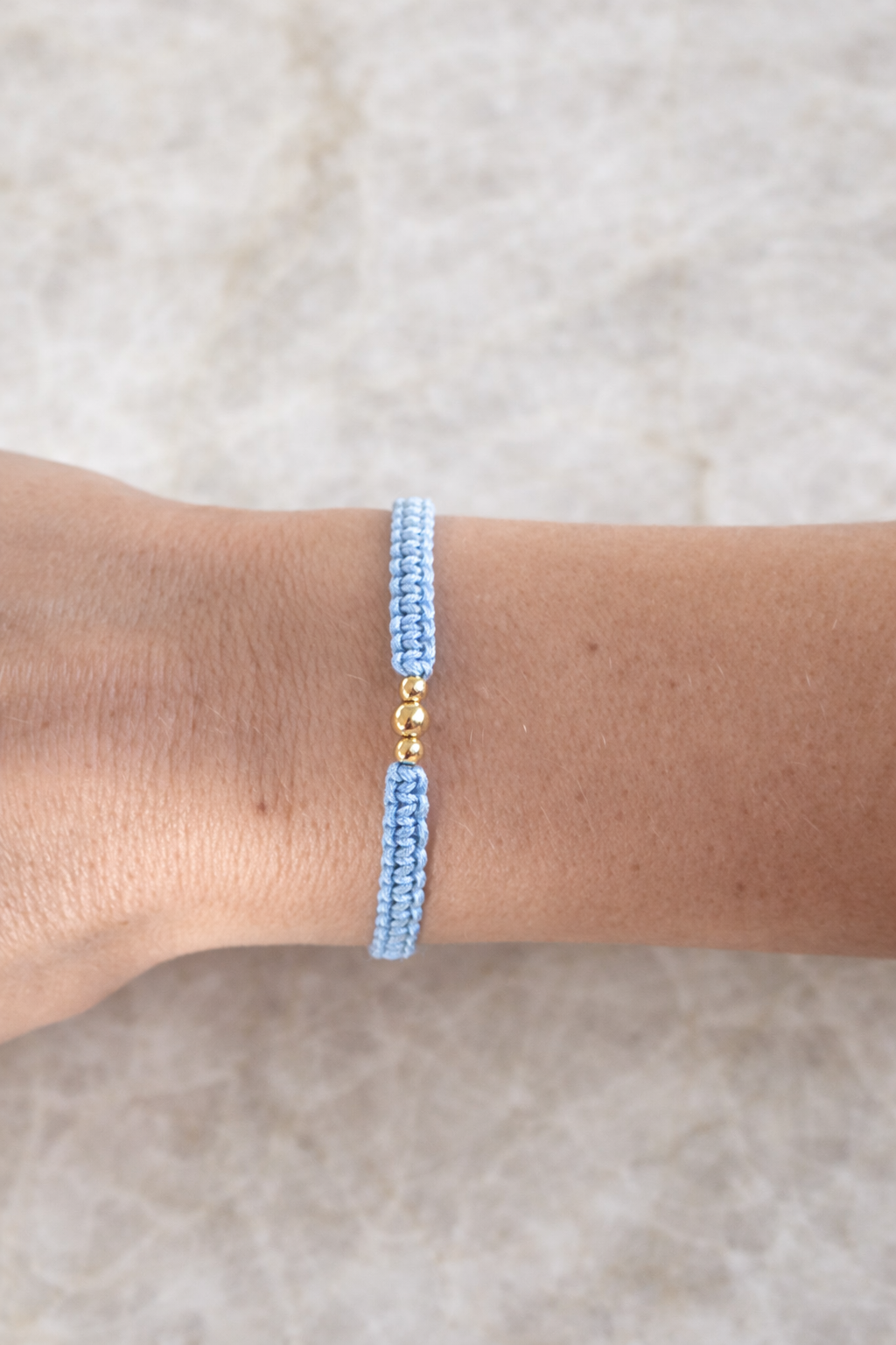 Bracelet tressé à la main en Belgique avec du fil de Jade bleu clair