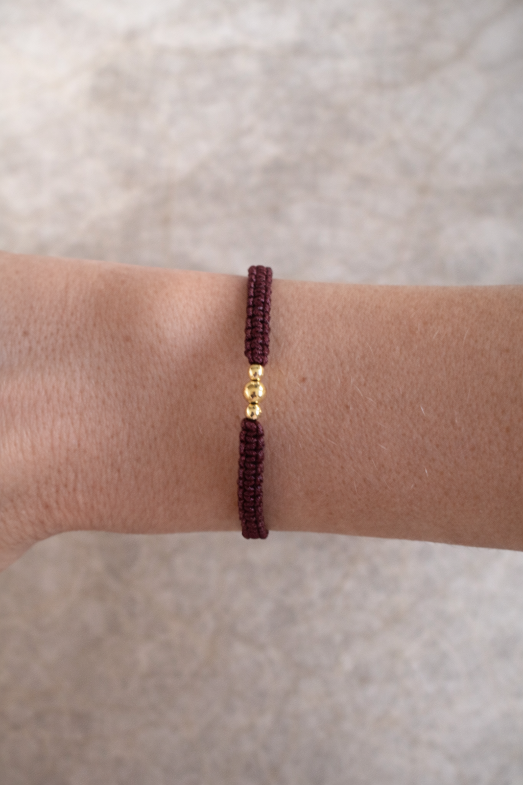 Bracelet tressé à la main en Belgique avec du fil de Jade bordeaux