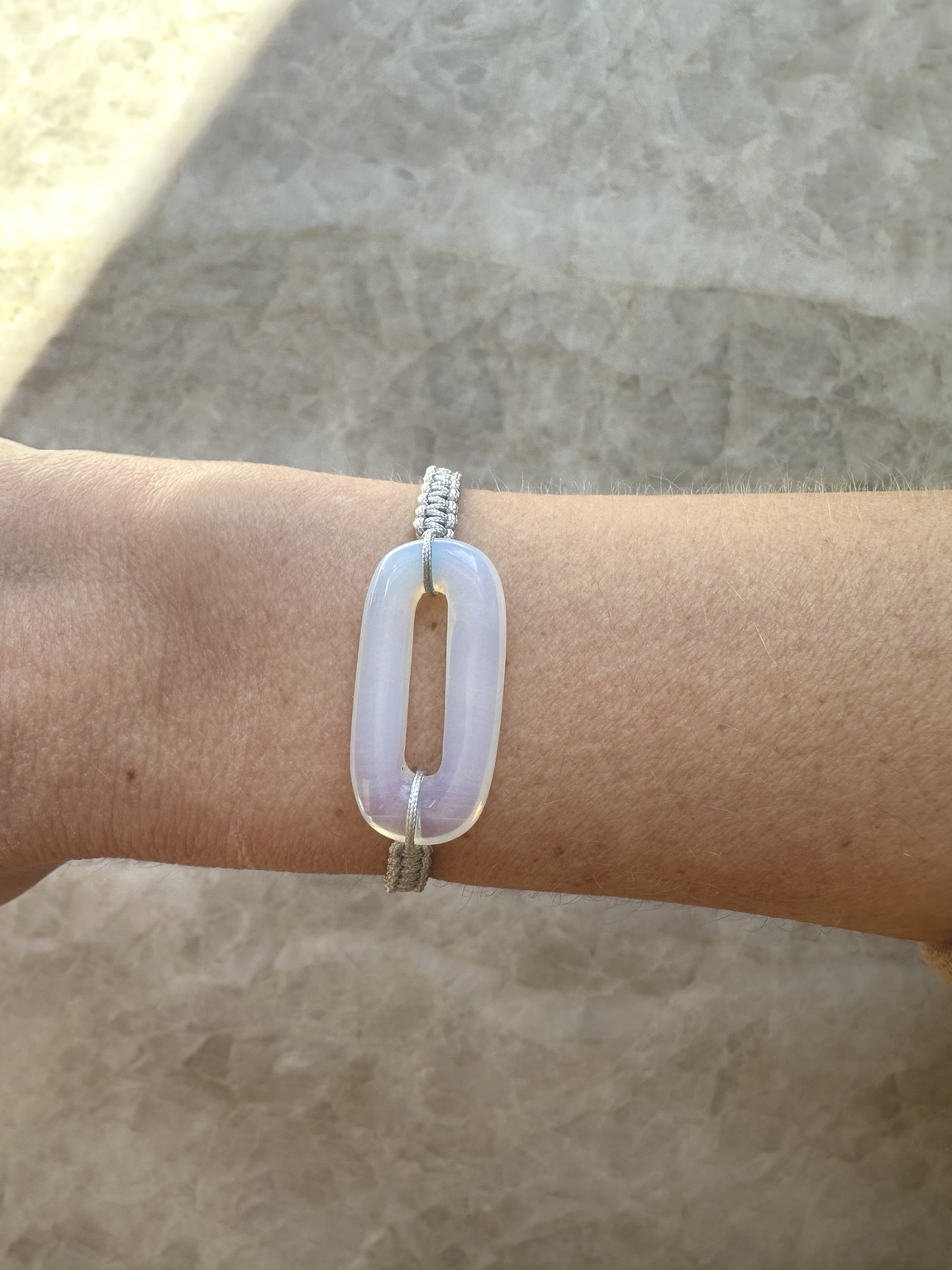 Bracelet tressé à la main en Belgique avec du fil de Jade gris clair