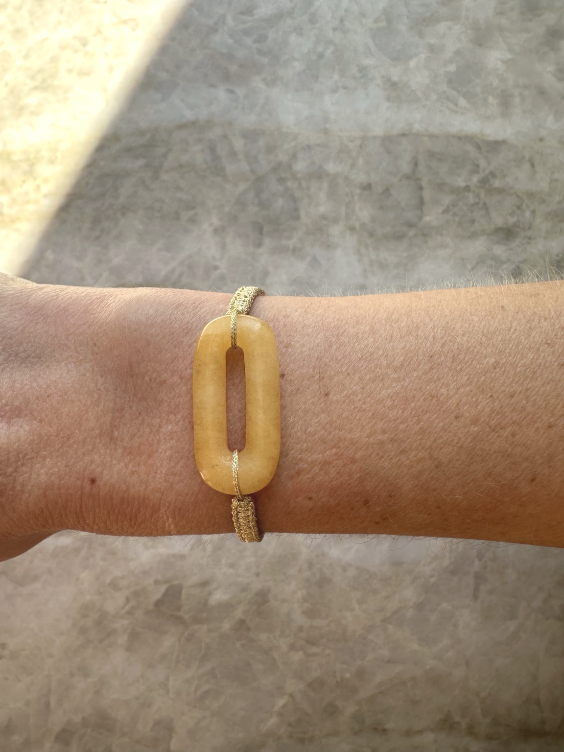 Bracelet tressé à la main en Belgique avec du fil de Jade doré